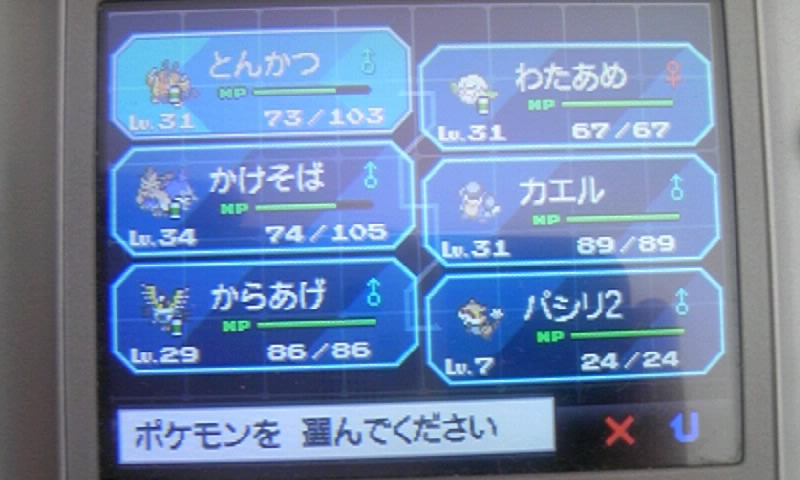 出現率が低いのは知ってましたが、出るまでに1時間もかかるわ、なかなかボールに入らないわ、途中で吹き飛ばしを打とうとするわ(カエルの濁流で命中が下がっていたので不発になりましたが)でもう…捕まえた挙句、性格が意地っ張りとかもうどこまで相性悪いんだろう…と。